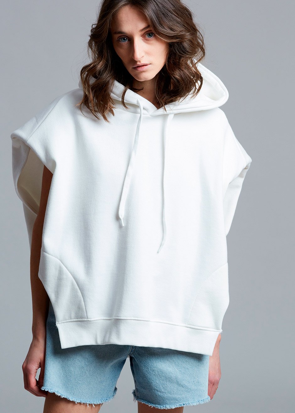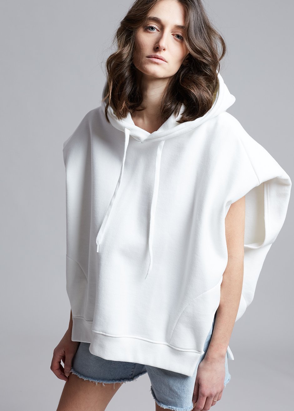 • Alex Sleeveless Statement Shoulder Hoodie in Ivory Sweatshirt The Frankie Shop